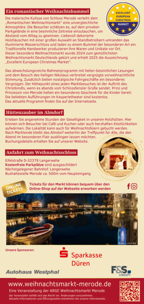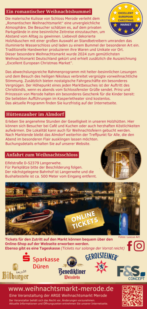 Tickets und Informationen: www.weihnachtsmarkt-merode.de